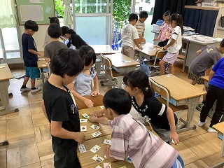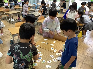 1年生学活 ことわざカルタで楽しくあぞびました。勝ち負けを受け入れることも大事な勉強です。