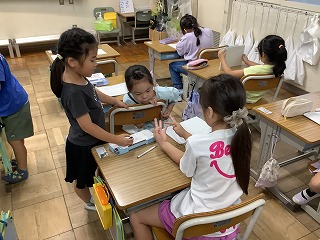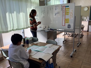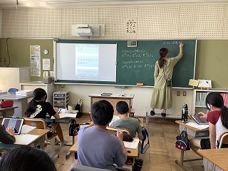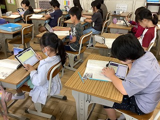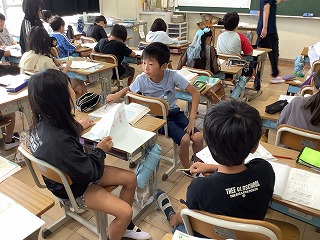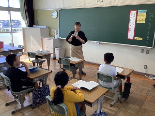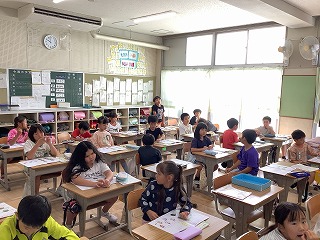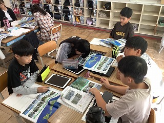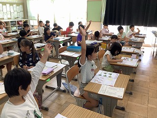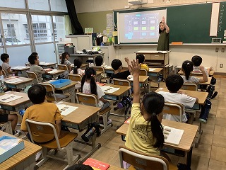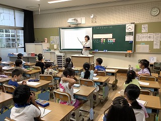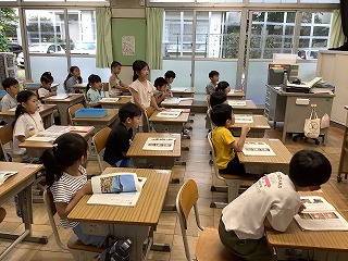 1年生国語 「うみのかくれんぼ」では海の生き物の隠れ方を学習します。「何が」「どこに」「どのように」隠れているかを確認しました。