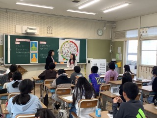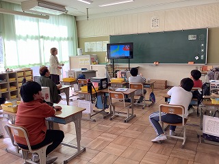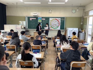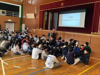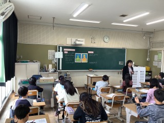 保健委員の児童がアンケート結果の報告をしたあと、半田市福祉部健康課 保健師 木暮かをり様に「こころを大悦インする方法 ~幸せになるためにストレスと上手に向き合おう~」をテーマに講話をしていただきました。