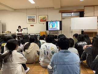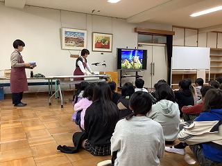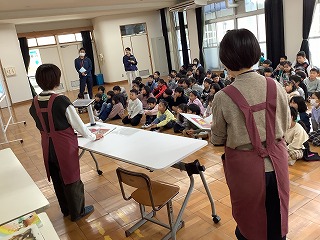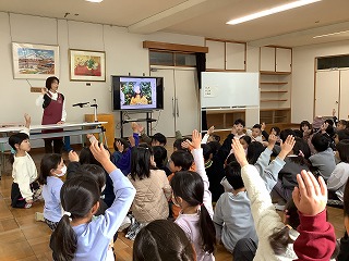 半田市図書館の方をお迎えし、1年生、4年生を対象にお話会(ブックトーク)を開催しました。1年生は「すてきな三にんぐみ」「にんじんとごぼうとだいこん」「しりとりのだいすきなおうさま」「むしたべるくさ」「ホネホネどうぶつえん」「わゴムはどのくらいのびるかしら」4年生は「1つぶのおこめ」「ぼくはくまですよ」「こぶとりたろう」「月のかがく」「なぞかけどうじょう」「ぼくだけのこと」の本の読み聞かせや紹介をしていただきました。20日は2・6年生、21日は3・5年年生を予定しています。 Recebemos um representante da Biblioteca Municipal de Handa para uma palestra sobre livros para alunos do primeiro e quarto ano.