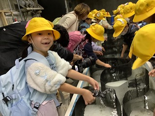 1年生は南知多ビートランドへ社会見学に行き、イルカショーを観たり、水辺の生き物を観たり触れ合ったりしました。 Os alunos do primeiro ano fizeram uma excursão ao Minamichita Beetland, onde assistiram a um show de golfinhos e observaram criaturas aquáticas.