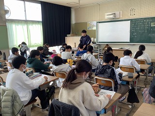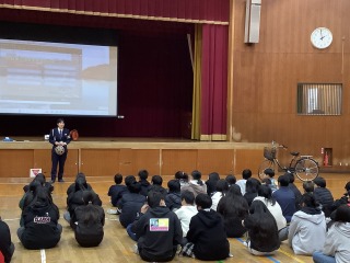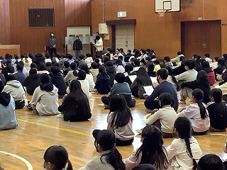5時間目に体育館にて、来年度の前期児童会役員選挙立候補者の演説と投票を行いました。立候補者の演説をしっかり聞いてから投票しました。 Durante a quinta aula no ginásio, ouvimos discursos e votamos nos candidatos que concorrerão às eleições do grêmio estudantil no primeiro semestre do próximo ano.Ouvi atentamente os discursos dos candidatos e depois votei.