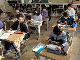 4年生算数 習い事と言えば、そろばん、習字の時代とは違って、今は授業で初めてそろばんを触るという子が多いです。