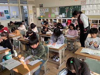 3学期2日目は、1・2年生は5時間、3~6年生は6時間授業でした。みんなよくがんばりました。