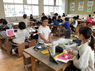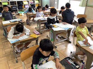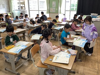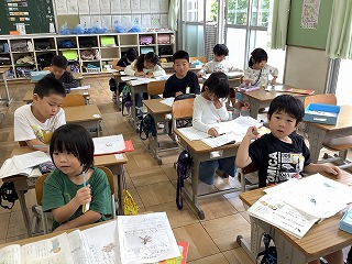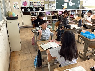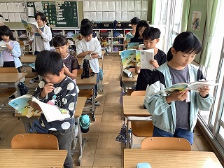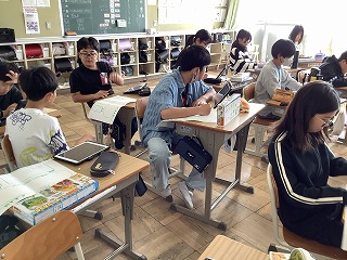 6年生国語 狂言「柿山伏」の学習に入りました。グループで役割を決めて演じるようです。