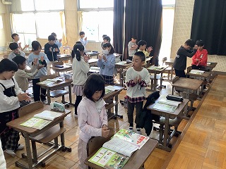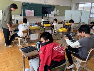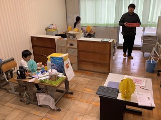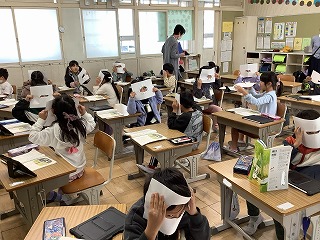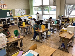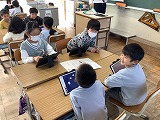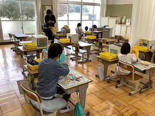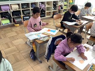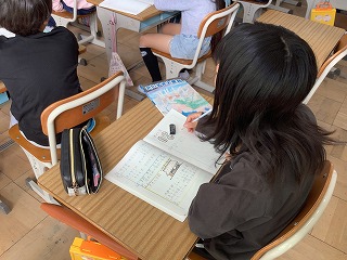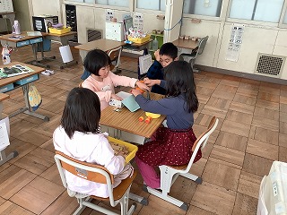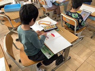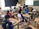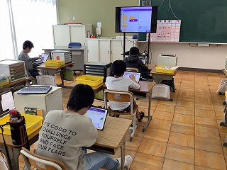 ひまわり 3~6年生はプログラミング、1・2年生は図書館で本を借りた後は、教室でお楽しみタイムです。