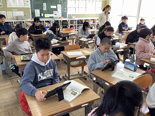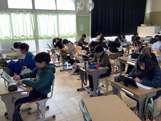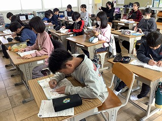 1年生情報アドバイザーにお越しいただいてプログラミングの授業を行いました。マウスに命令を出して、チーズのところにたどり着いたらOKです。