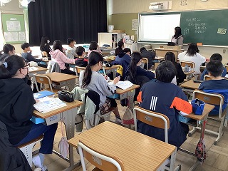 6年生外国語活動 My Best Memory 小学校の一番の思い出を伝え合いました。最後にALTの前で伝える側と聞く側のやりとりを聞いてもらいました。