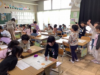 4年生体育 台上前転の練習です。いくつか用意された練習場所から、自分に合った場所を選んで練習しました。