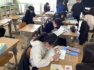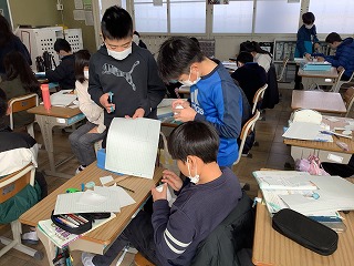 5年生国語 「言葉でスケッチ」書く学習の単元です。伝えたい動物の「様子」「見てわかること」「周りの様子」「想像したこと」など観点にそってメモをしていきました。