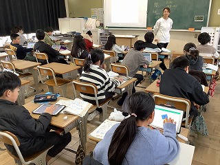 5時間目に体育館にて、来年度の前期児童会役員選挙立候補者の演説と投票を行いました。立候補者の演説をしっかり聞いてから投票しました。 Durante a quinta aula no ginásio, ouvimos discursos e votamos nos candidatos que concorrerão às eleições do grêmio estudantil no primeiro semestre do próximo ano.Ouvi atentamente os discursos dos candidatos e depois votei.