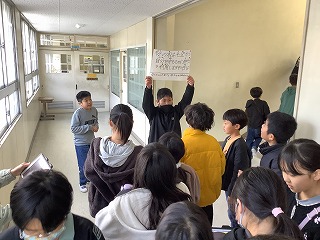 大放課に3・5年生を対象にスマイルの会を行いました。ペアでクイズに挑戦します。このペアでの活動も残りわずかです。 Realizamos um evento chamado Smile para os alunos do 3º e 5º ano.Eles participarão de um quiz em duplas.