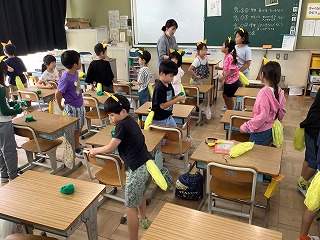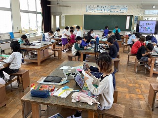 ひまわり 3~6年生はプログラミング、1・2年生は図書館で本を借りた後は、教室でお楽しみタイムです。