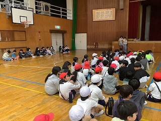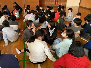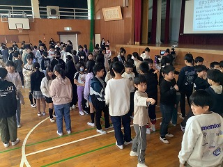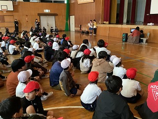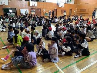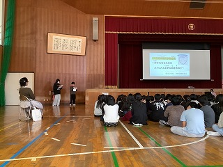 保健委員の児童がアンケート結果の報告をしたあと、半田市福祉部健康課 保健師 木暮かをり様に「こころを大悦インする方法 ~幸せになるためにストレスと上手に向き合おう~」をテーマに講話をしていただきました。