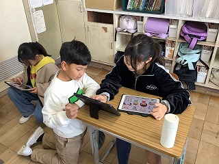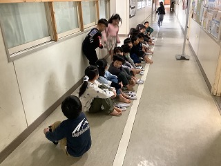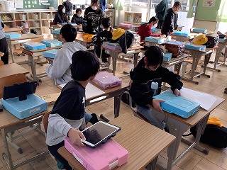 ひまわり 高学年は外国語活動、中学年は書写、低学年はたこあげのたこを作っていました。