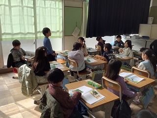 日本語教室 2年生がカタカナで書くことばについて学習しました。動物の鳴き声は国によって言い方が違うということも学びました。