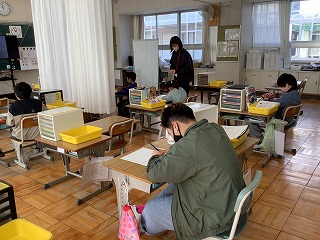 5年生国語 「言葉でスケッチ」書く学習の単元です。伝えたい動物の「様子」「見てわかること」「周りの様子」「想像したこと」など観点にそってメモをしていきました。