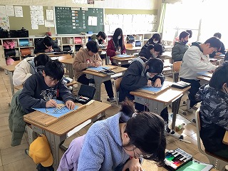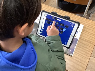 1年生情報アドバイザーにお越しいただいてプログラミングの授業を行いました。マウスに命令を出して、チーズのところにたどり着いたらOKです。