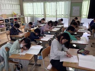 3年生総合 自分の将来の夢について発表練習をしました。漠然と将来の夢を思い描くのではなく、自分の得意なことに目を向け、それを生かしていこうとする思いが伝わる発表でした。