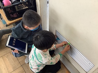 4年生理科 「冬の星」の学習です。冬の夜空を撮影した画像を見ながらオリオン座の位置の変化をまとめました。