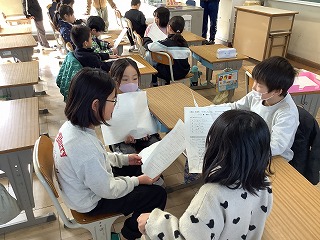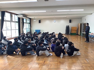 4年生が新入生の移動を手伝いました。優しく声をかける姿が頼もしく思えました。 Os alunos do quarto ano ajudaram os alunos do primeiro ano.Foi maravilhoso vê-lo falar com tanta gentileza. 本校の学校生活の様子や、今後の準備についての説明しました。交通指導員さんからは安全な登下校について話をしていただきました。 Explicamos como é a vida escolar na nossa escola e quais preparativos devem ser feitos.Confirmamos como ir e voltar da escola em segurança. 新入生の入学を楽しみにしています。 Aguardamos com expectativa a chegada de novos alunos.